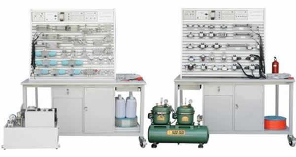 该实验台采用了铝合金材料。美观大方,坚固耐用,操作方便。基本配置为:气动实验元件1;气动实验PLC电气控制系统1套;气动实验继电器控制模块1套;低噪音空压机1台;液压实验元件1套,液压实验PLC电气控制系统1套;液压实验继电器控制模块1套;液压实验泵站1台。(计算机根据学校要求另行配置)