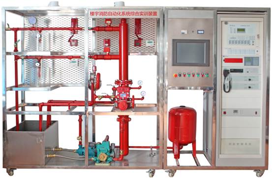 "消防联动控制中心及喷淋灭火系统实训装置”依据[建筑消防设计规范]进行标准设计,该系统具有消防控制联动中心、消防广播电话中心、消防喷水灭火系统典型结构,能够完成火灾探测,早期探测,火灾报警,现场灭火,气体灭火等演示性实训项目和消防管理中心,同时还能清楚的展示喷淋灭火系统的典型设备构成和系统工作原理,通过该装置的操作学习,学生可以对楼宇中喷水灭火系统的结构有一个全面的了解,喷淋系统与联动动控制中心系统实现联网控制,探测器与联动中心联接实现手自动控制;气体灭火系统操作管理中心的联接,同时与广播电话中心联网,完全实现现智能化大楼设计,掌握建筑物内部主要灭火设备的应用,熟悉楼宇中湿式报警阀、水流指示器、压力开关等灭火设备的结构和原理,了解消防控制中心的联动操作与设置,广播电话中心的控制与操作设置,了解现代建筑消防联动设备系统原理和调试,熟悉消防的控制原理和工作过程。它适用于学习《建筑灭火系统》、《楼宇给排水系统》、《楼宇消防控制系统》等专业课的中职业院校的实训教学。
